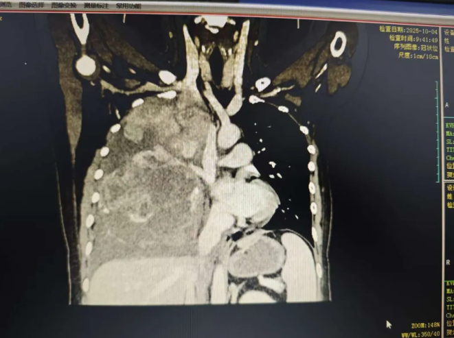 这位27岁的年轻女孩,最近几个月一直被反复的胸闷、咳嗽和气短所困扰。来到贺州市中医医院检查后,结果让人大吃一惊——她的右侧胸腔内,长了一个巨大的肿瘤。