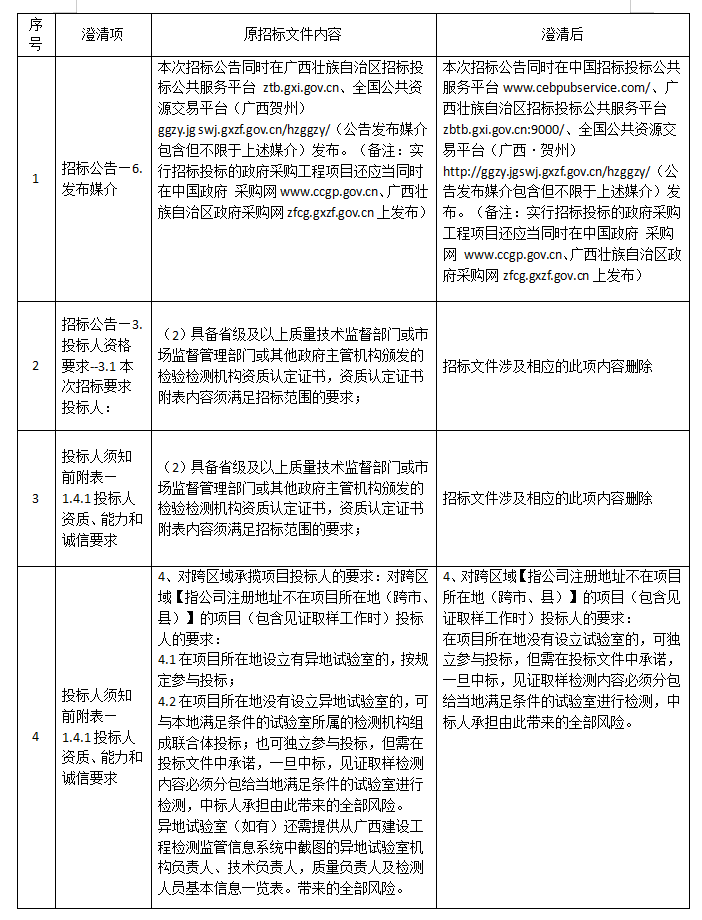 《招标文件》作如下澄清: