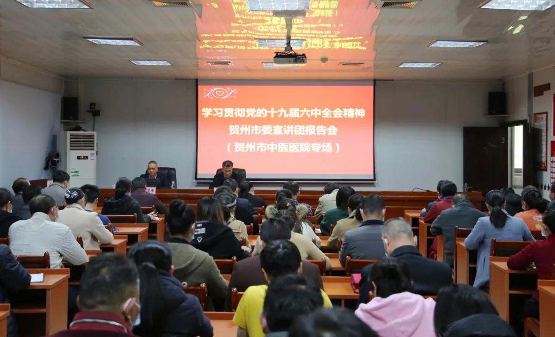 12月15日,学习贯彻党的十九届六中全会精神贺州市宣讲团报告会贺州市中医医院专场在医院三楼大会议举行。